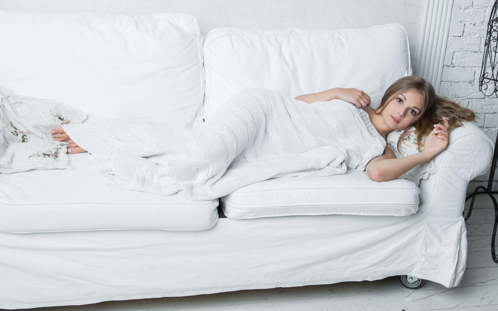 jeff milton, sexy girl, adult model, russian girl, sofa, blanket, lovely face, long hair, view, look, non nude