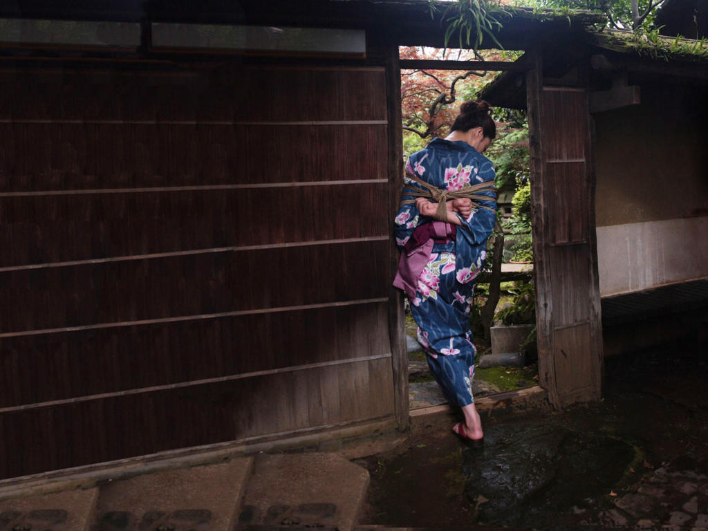 kyoko kazama, kinbaku model, japanese garden, kimono, tied, submissive, bondage, asian, submissive girl, fetish babe, hot