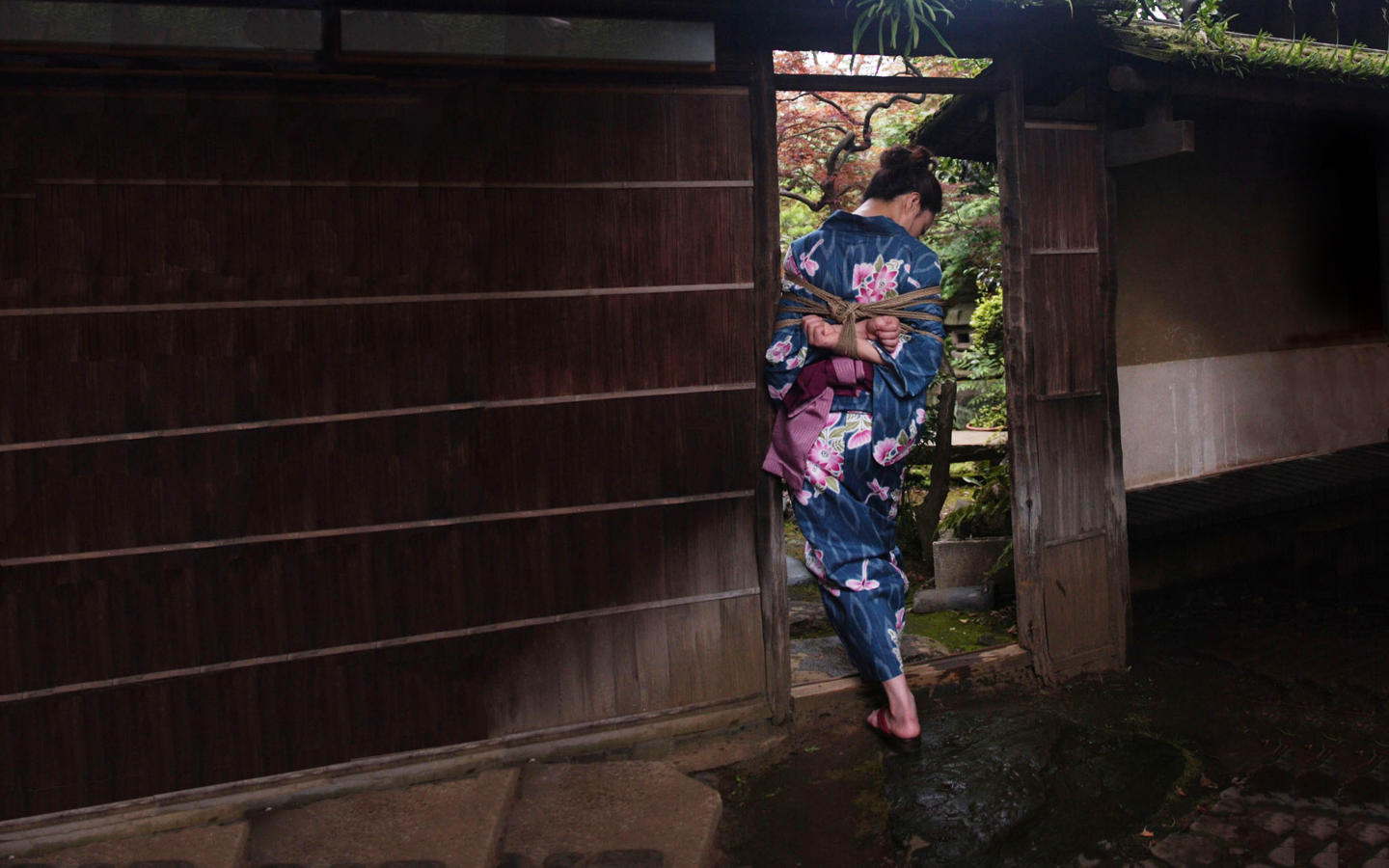 kyoko kazama, kinbaku model, japanese garden, kimono, tied, submissive, bondage, asian, submissive girl, fetish babe, hot