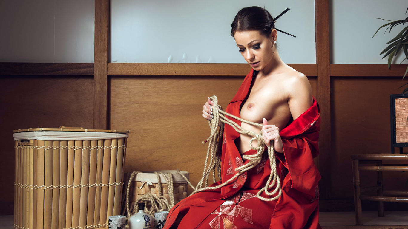 melisa mendiny, melisa a, lexa, brunette, robe, semi naked, tits, nipples, rope, hi-q