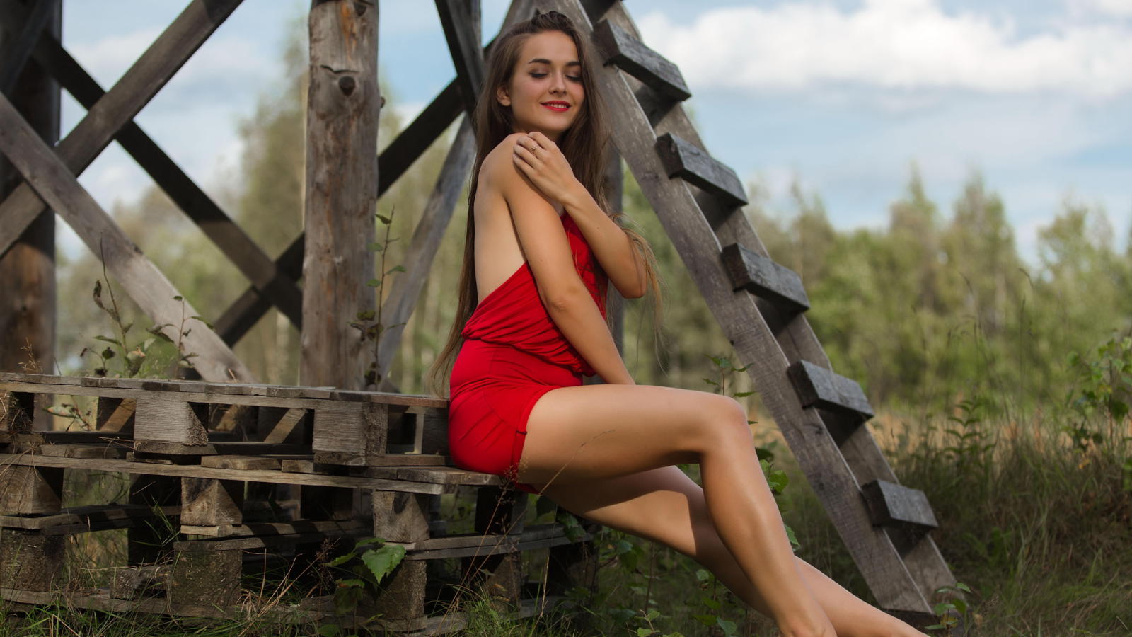 nora, foxy, famegirls, outdoors, smile, brunette, legs