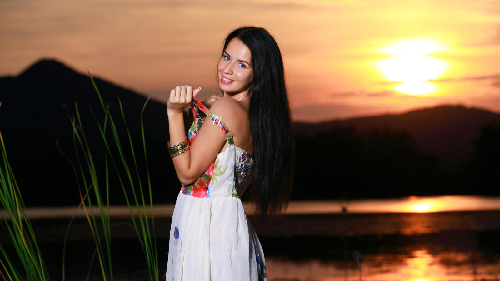 lola marron, malena r, brunette, sexy girl, adult model, sexy dressed, sunset, smile, beach, undressing