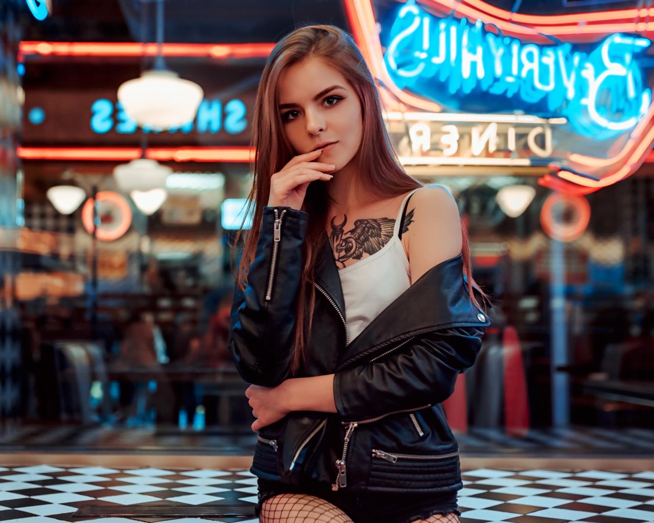 vasilisa sarovskaya, model, pretty, babe, brunette, russian, leather jacket, tattoo, fishnet, no nude, 4k, uhd
