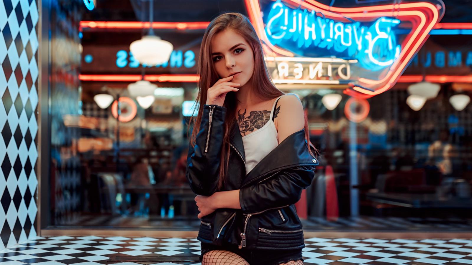 vasilisa sarovskaya, model, pretty, babe, brunette, russian, leather jacket, tattoo, fishnet, no nude, 4k, uhd