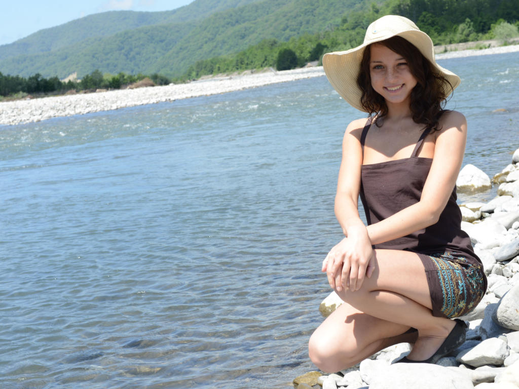 ← Go back: brunette, hat, river, 8k, s...