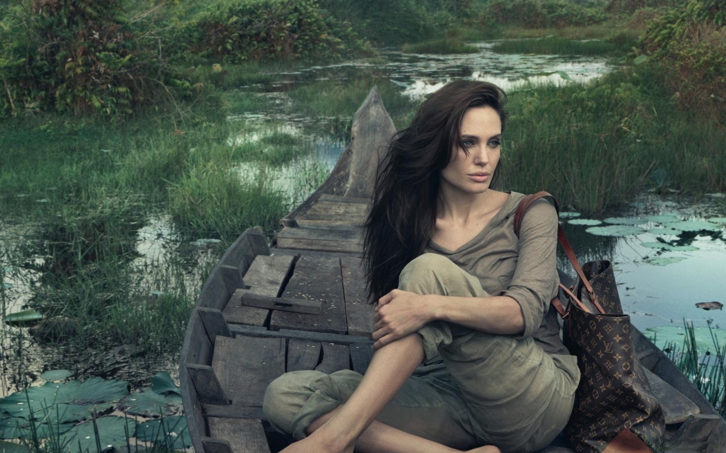 angelina jolie, actress, brunette, louis vuitton, cambodia, boat