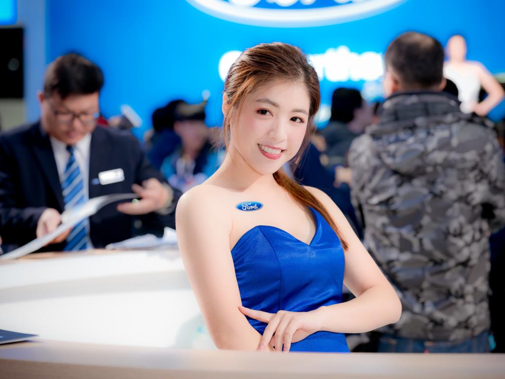 girl, asian, sweet, cute, smile, blue dress, brunette, car show