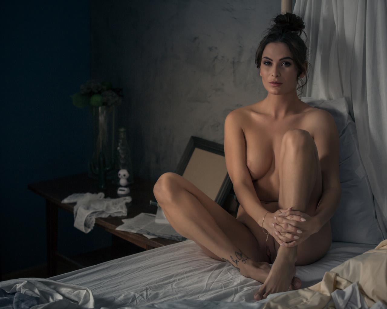 cosmo, brunette, sexy girl, adult model, boobs, tits, bed, shaved pussy, pussy, csilla, juliette, rikku
