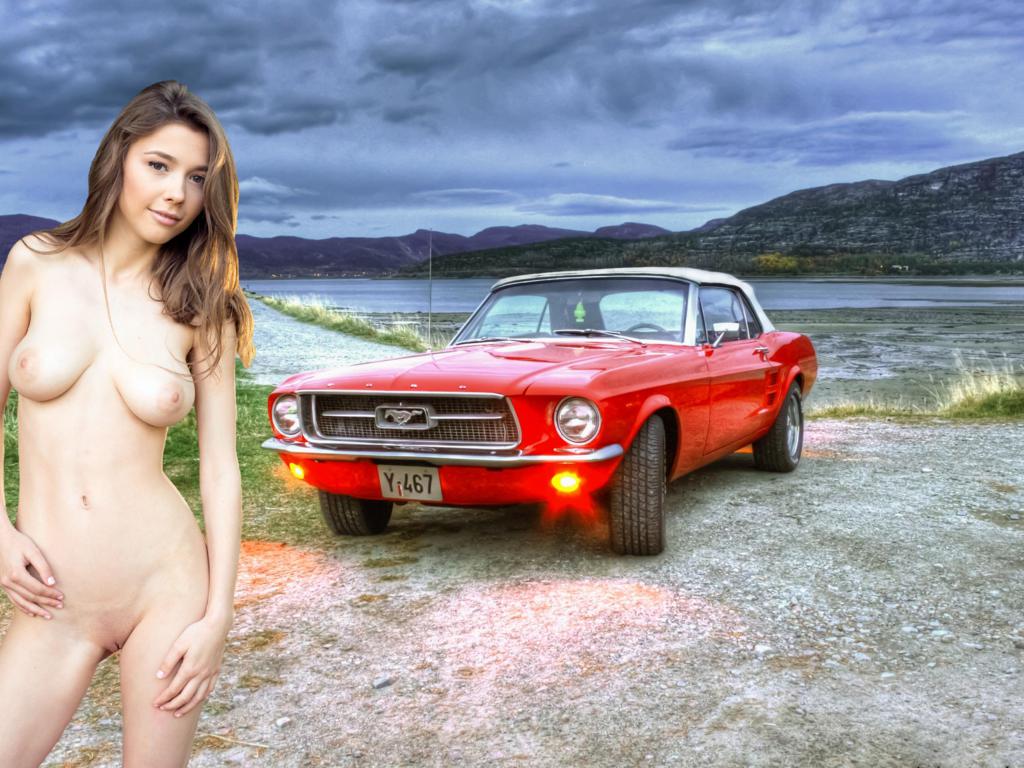 mila azul, mila, milla, milla d, milla azul, brunette, car, mustang, naked, big tits, nipples, shaved pussy, hi-q