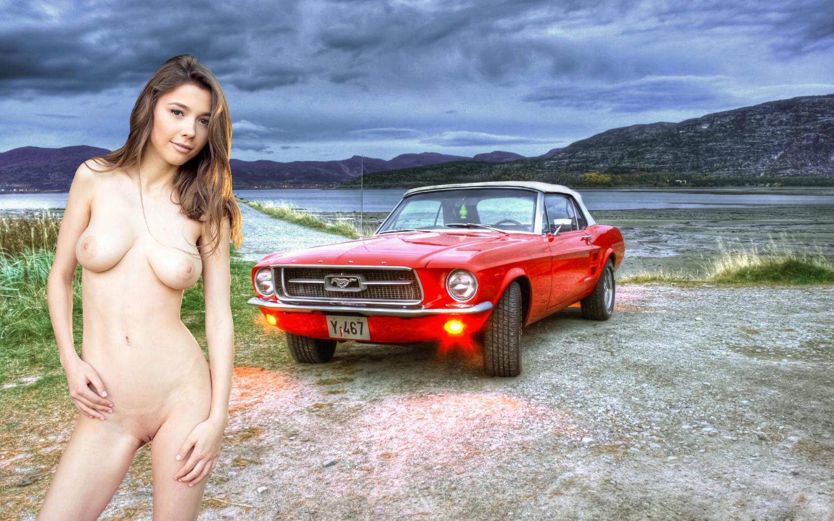 mila azul, mila, milla, milla d, milla azul, brunette, car, mustang, naked, big tits, nipples, shaved pussy, hi-q