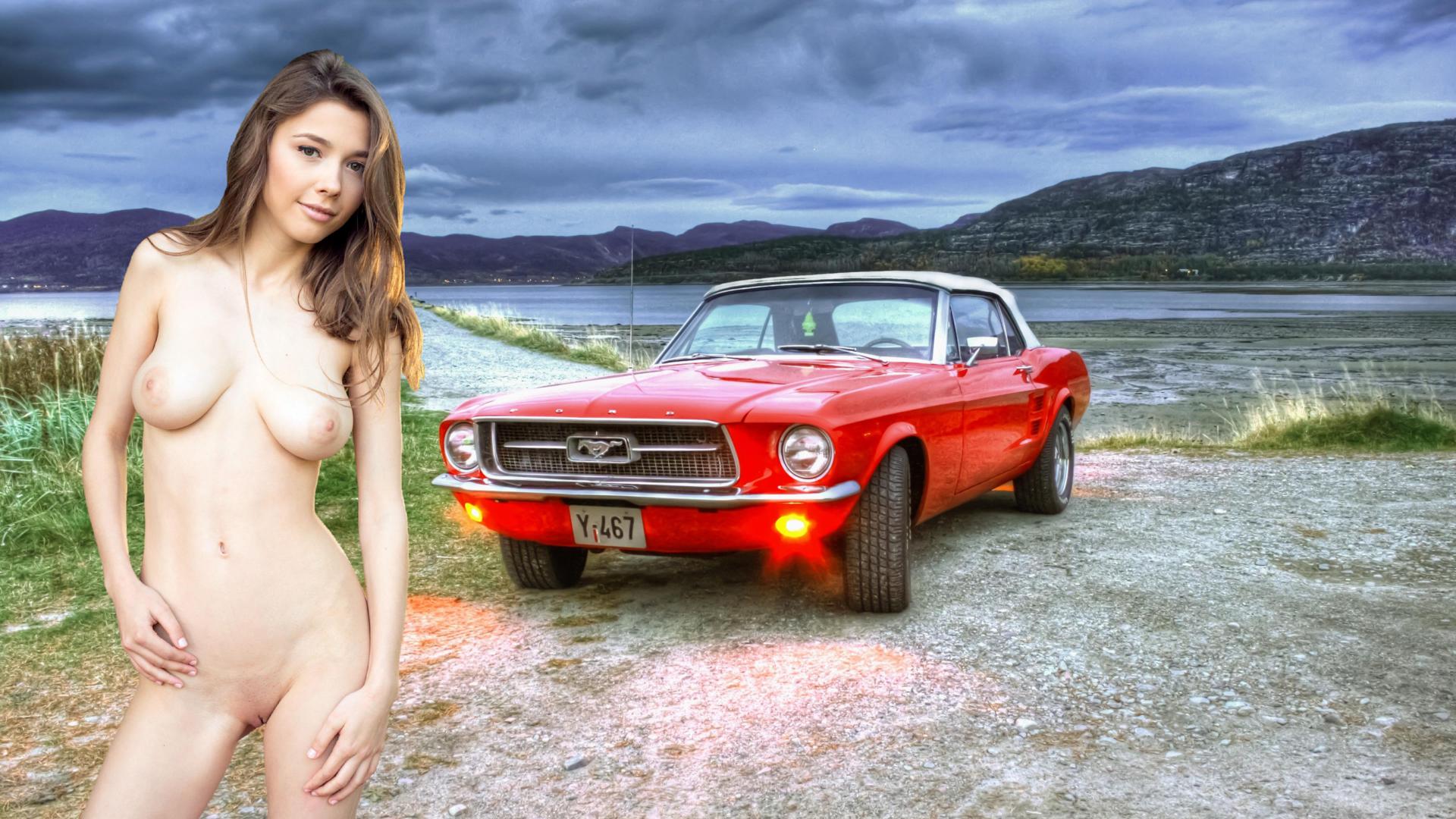 mila azul, mila, milla, milla d, milla azul, brunette, car, mustang, naked, big tits, nipples, shaved pussy, hi-q