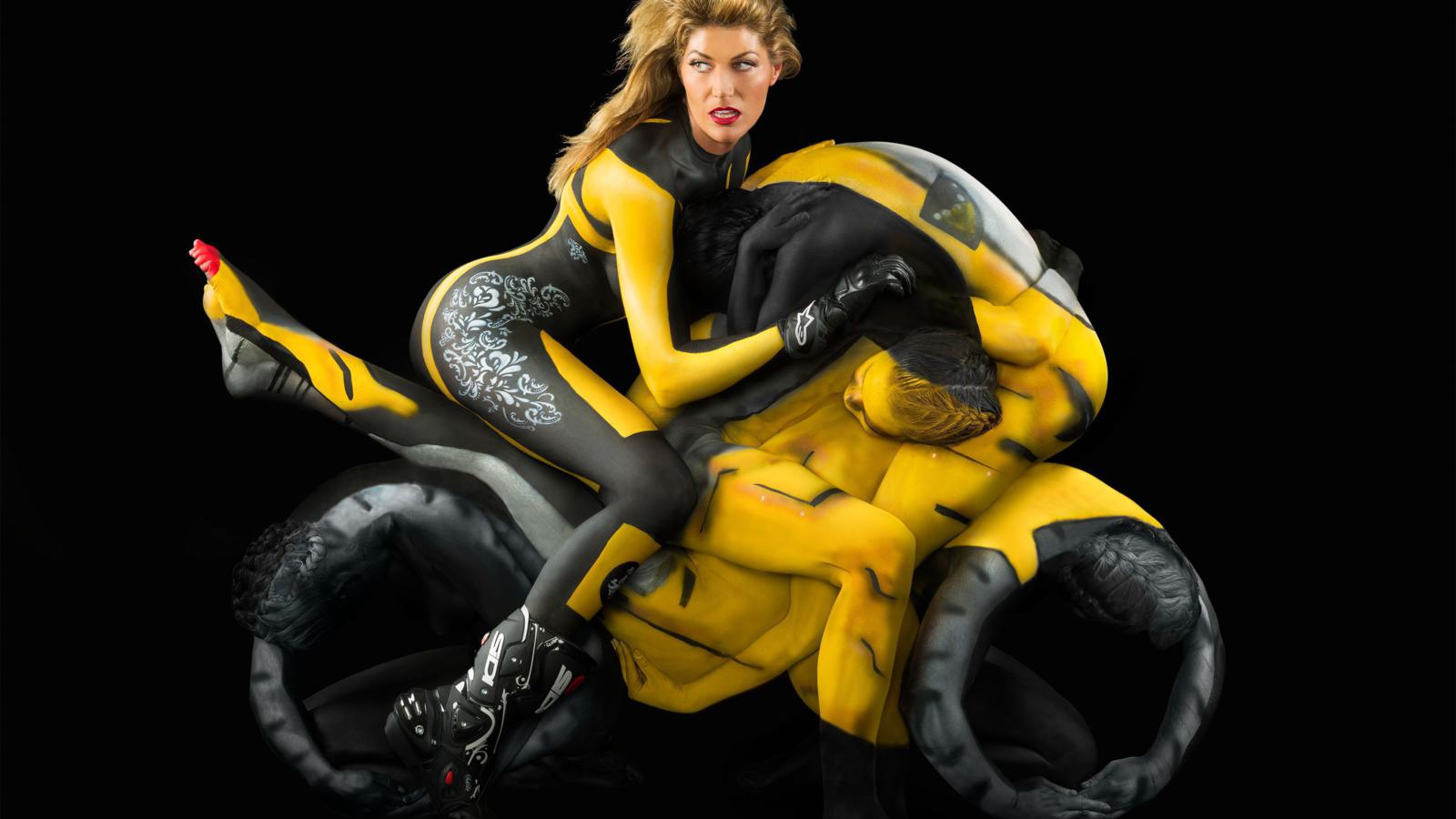 ← Go back: body paint, 6 babes, motorb...