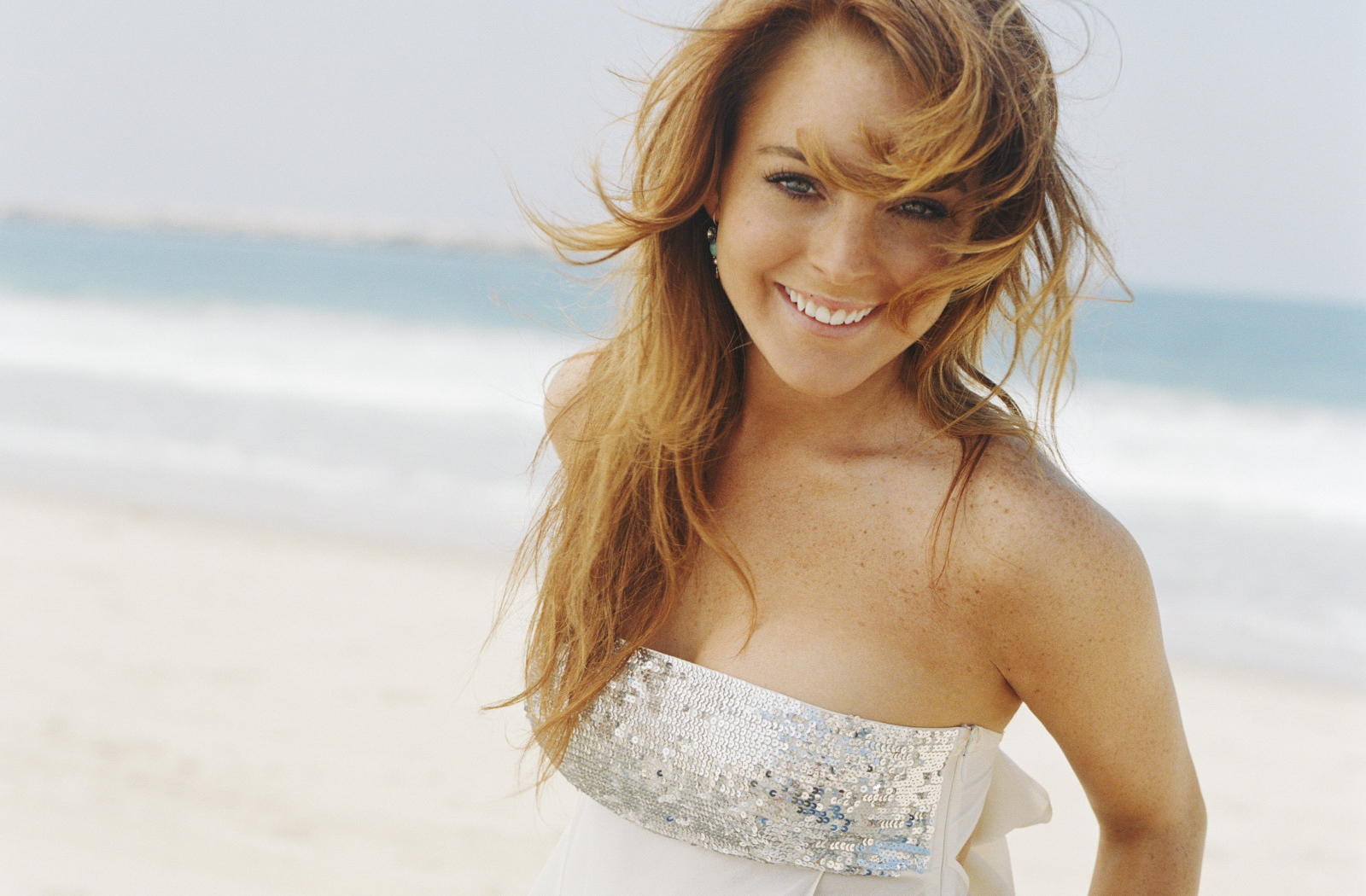 lindsay lohan, actress, dress, smile, blonde, sexy, sea, beach
