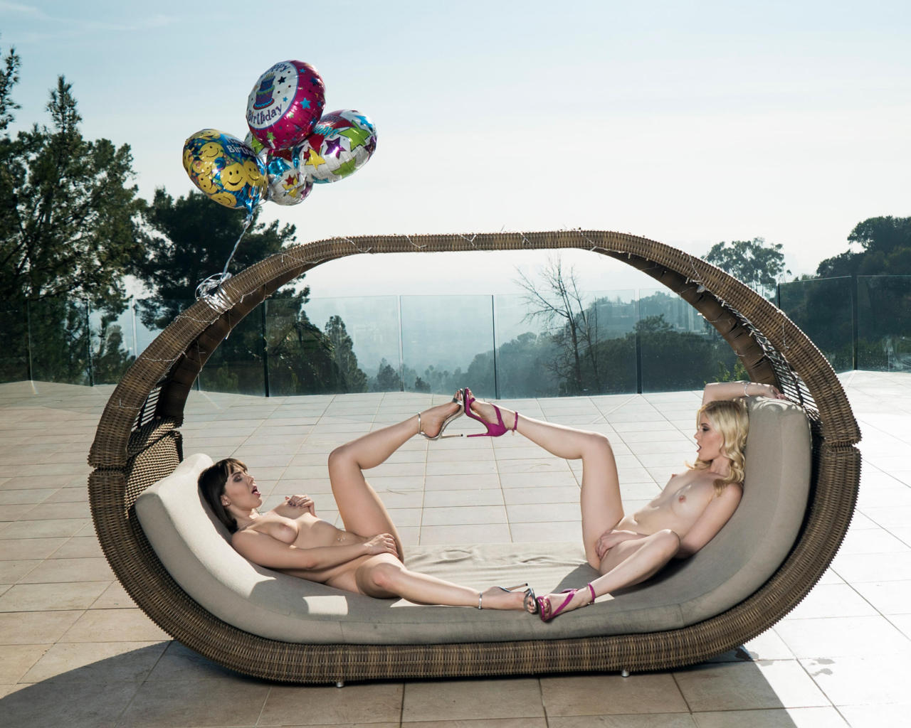 charlotte stokely, jenna sativa, lesbian, 2 girls, spreading, pussy, heels, masturbating, spreading legs, nude, tits