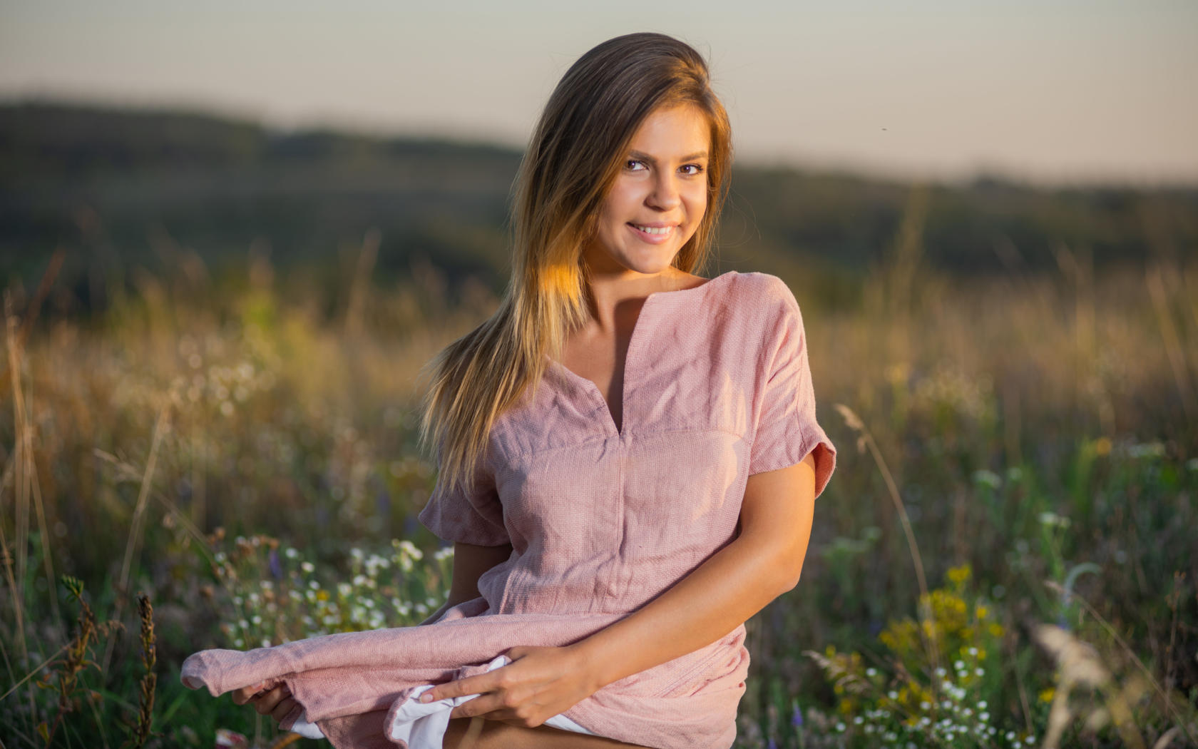 zelda b, zelda, arina b, naked, sexy, hi-q, model, hot, brunette, t-shirt, nature, outdoor, smile, non nude