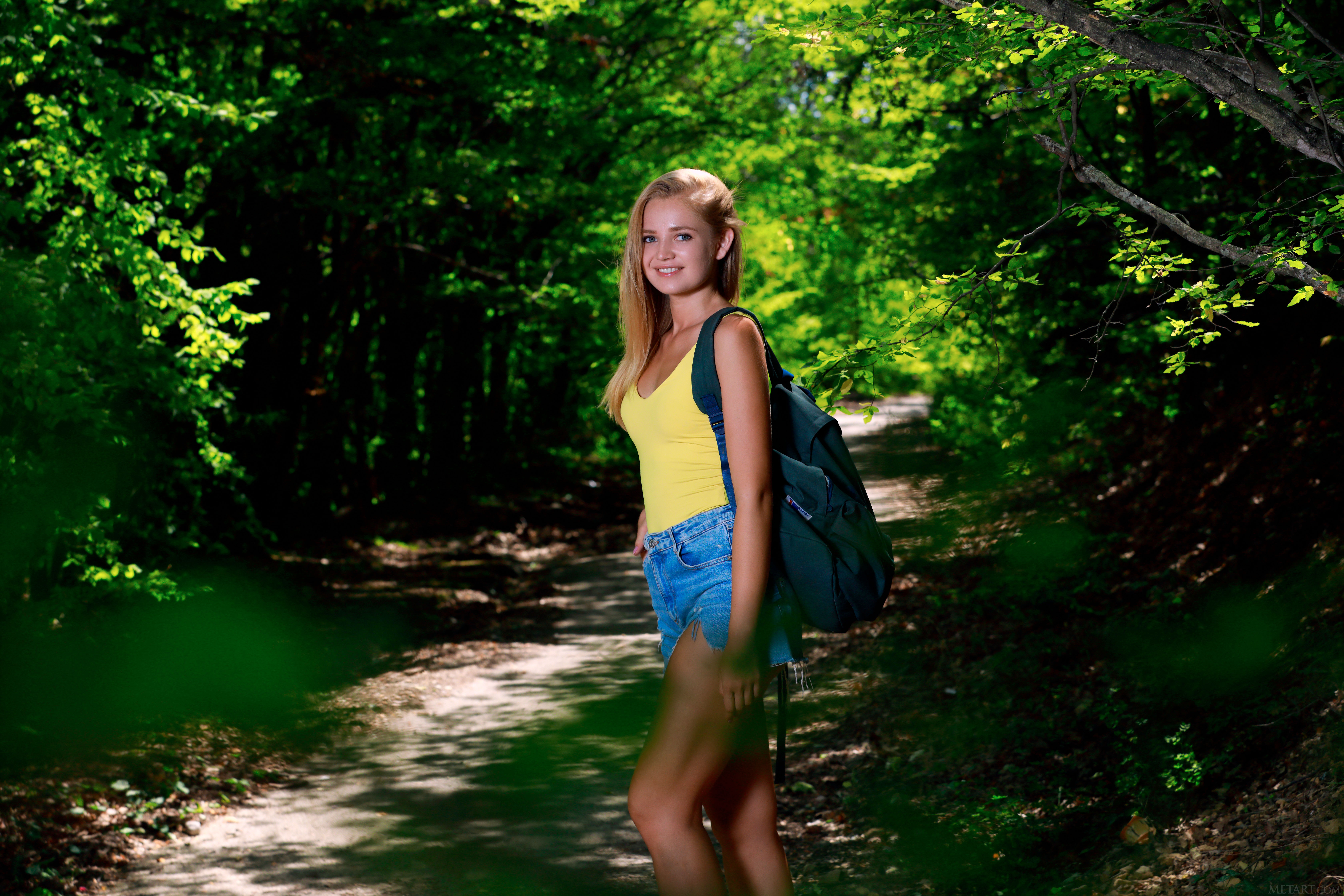 gabriella, blonde, nature, outdoor, smile, denim shorts, non nude