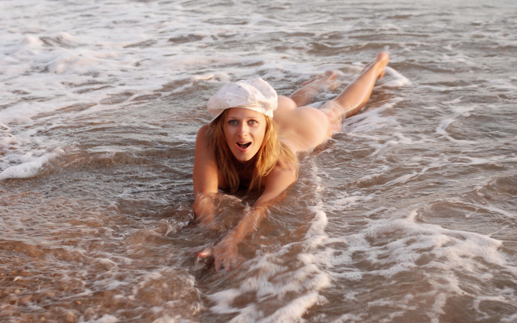 flower, beach, ocean, cap, sea, nude, wet, tanned, ass