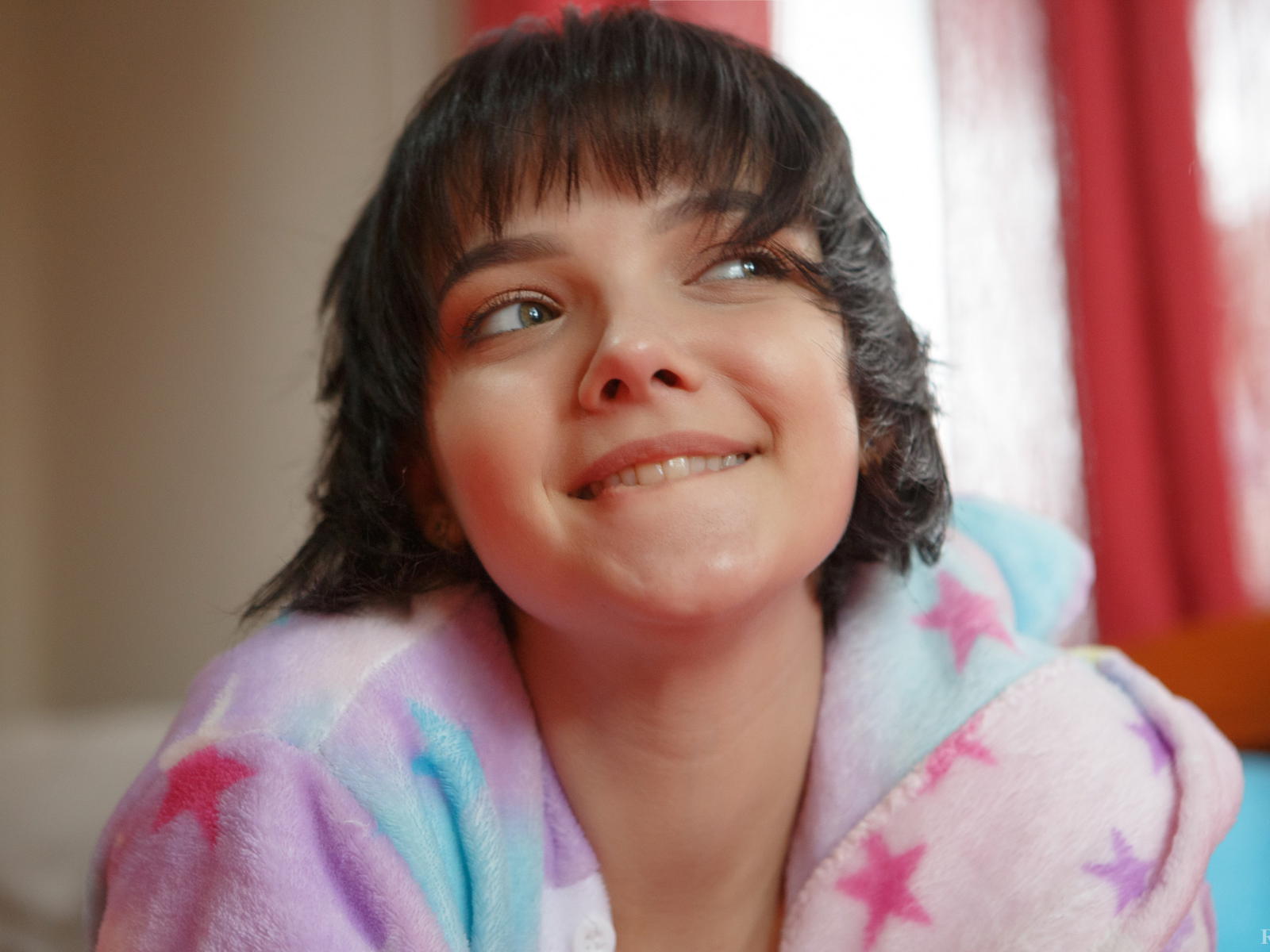 cali, sandra, chanel fenn, hot, model, sexy, young, teen, hi-q, sweet, bed, face, close up, smile, pajamas