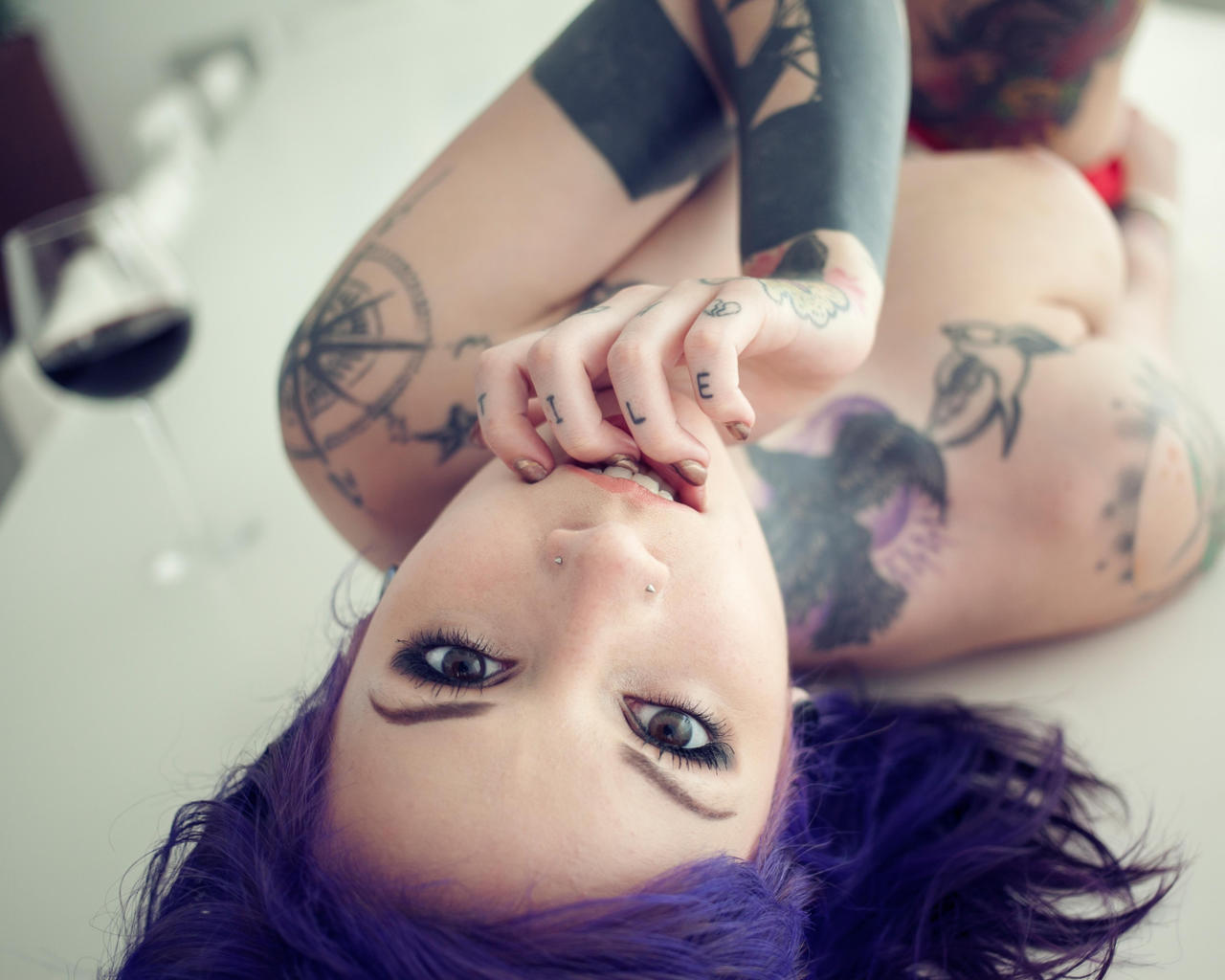 rebecca crow, katherine, suicide girls, tattoo, big  tits, purple hair, boobs, tits