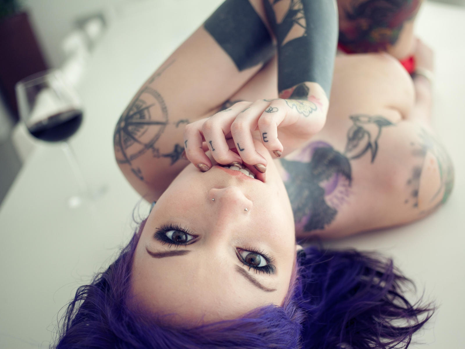 rebecca crow, katherine, suicide girls, tattoo, big  tits, purple hair, boobs, tits