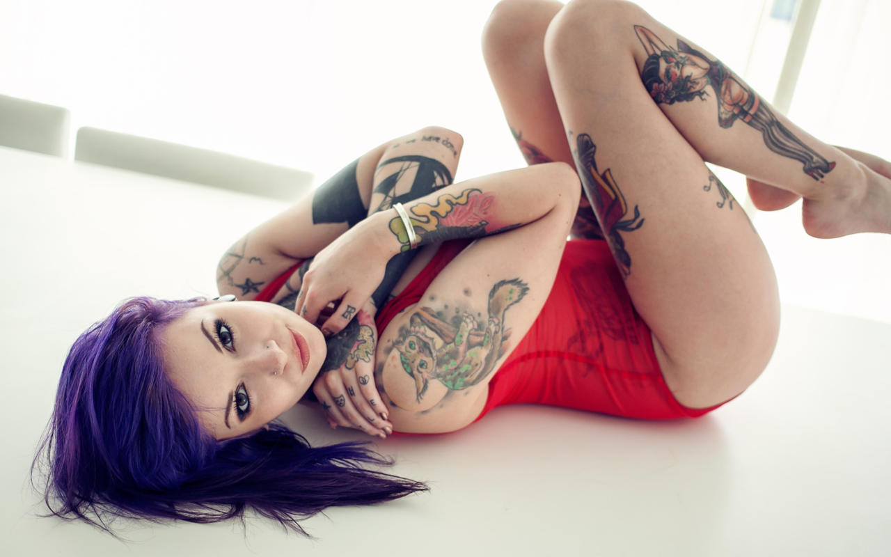 rebecca crow, katherine, suicide girls, tattoo, big  tits, purple hair