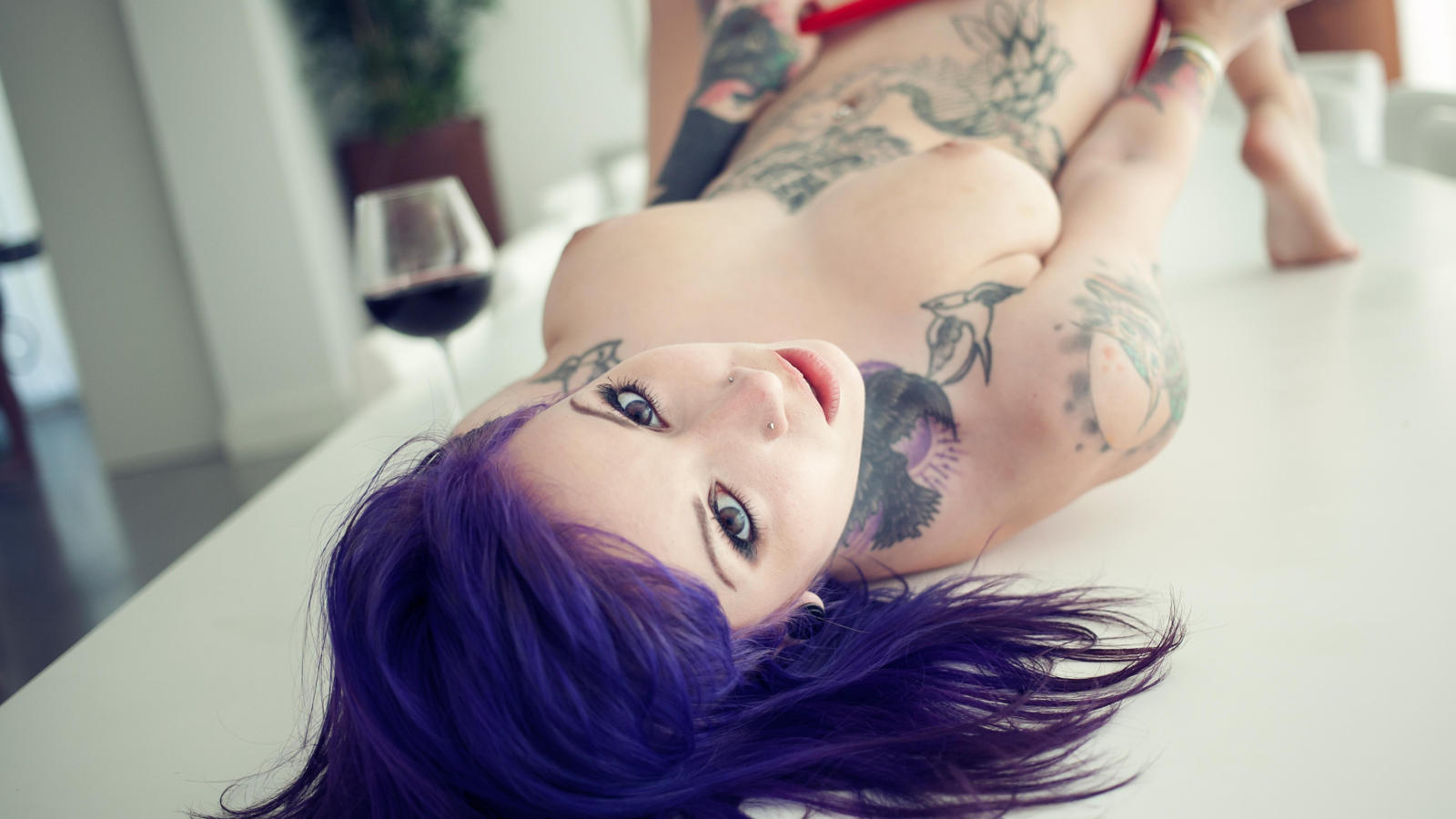 rebecca crow, katherine, suicide girls, tattoo, big  tits, purple hair, boobs, big tits, nipples