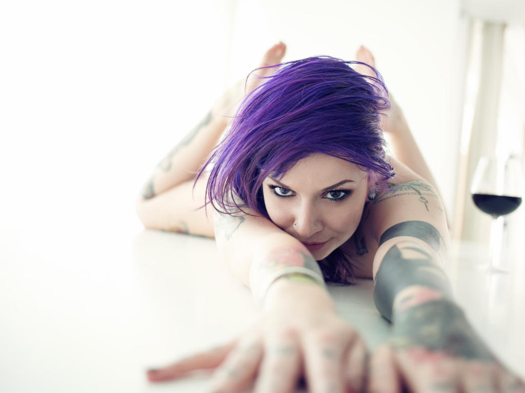 rebecca crow, katherine, suicide girls, tattoo, big  tits, purple hair