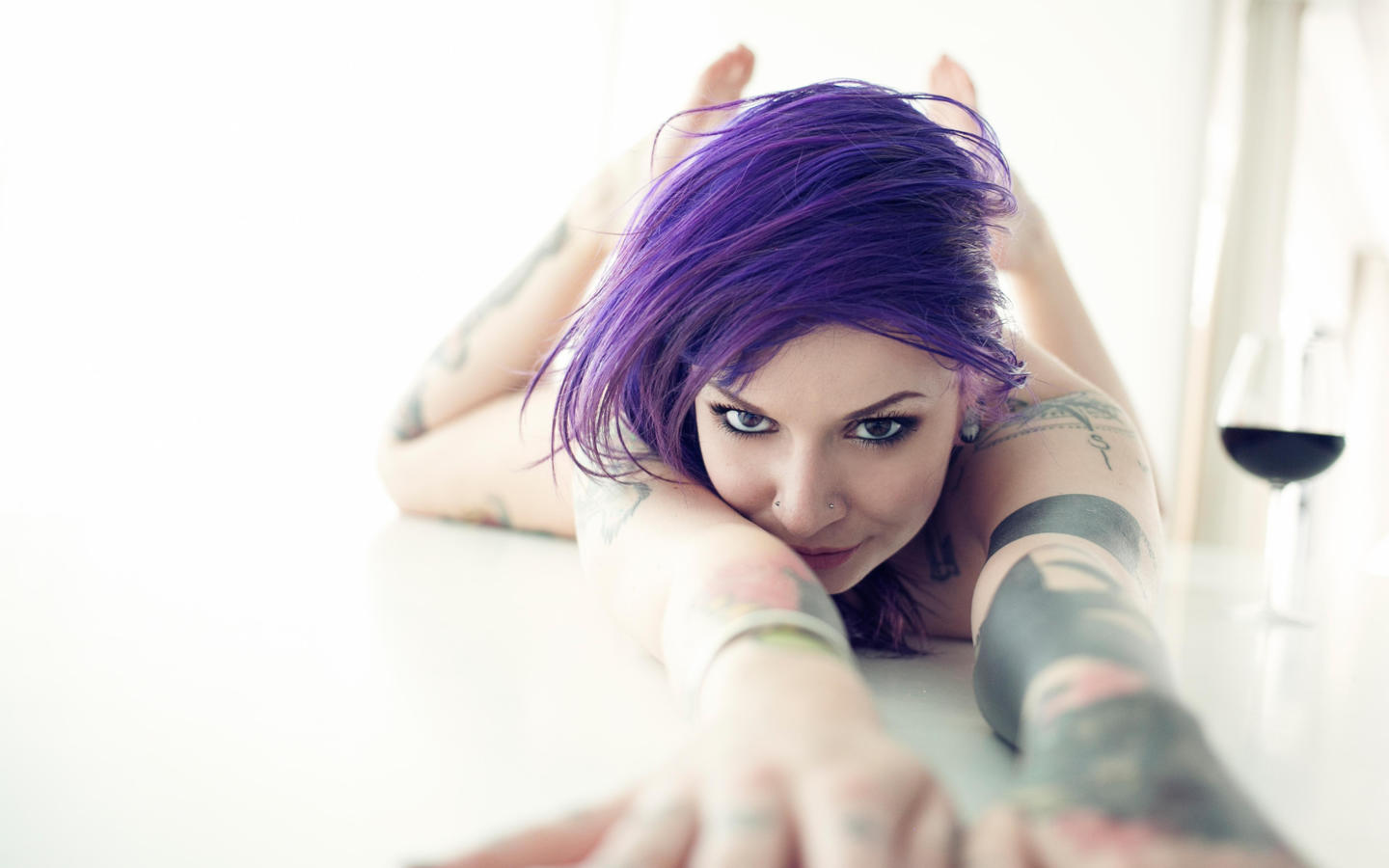 rebecca crow, katherine, suicide girls, tattoo, big  tits, purple hair
