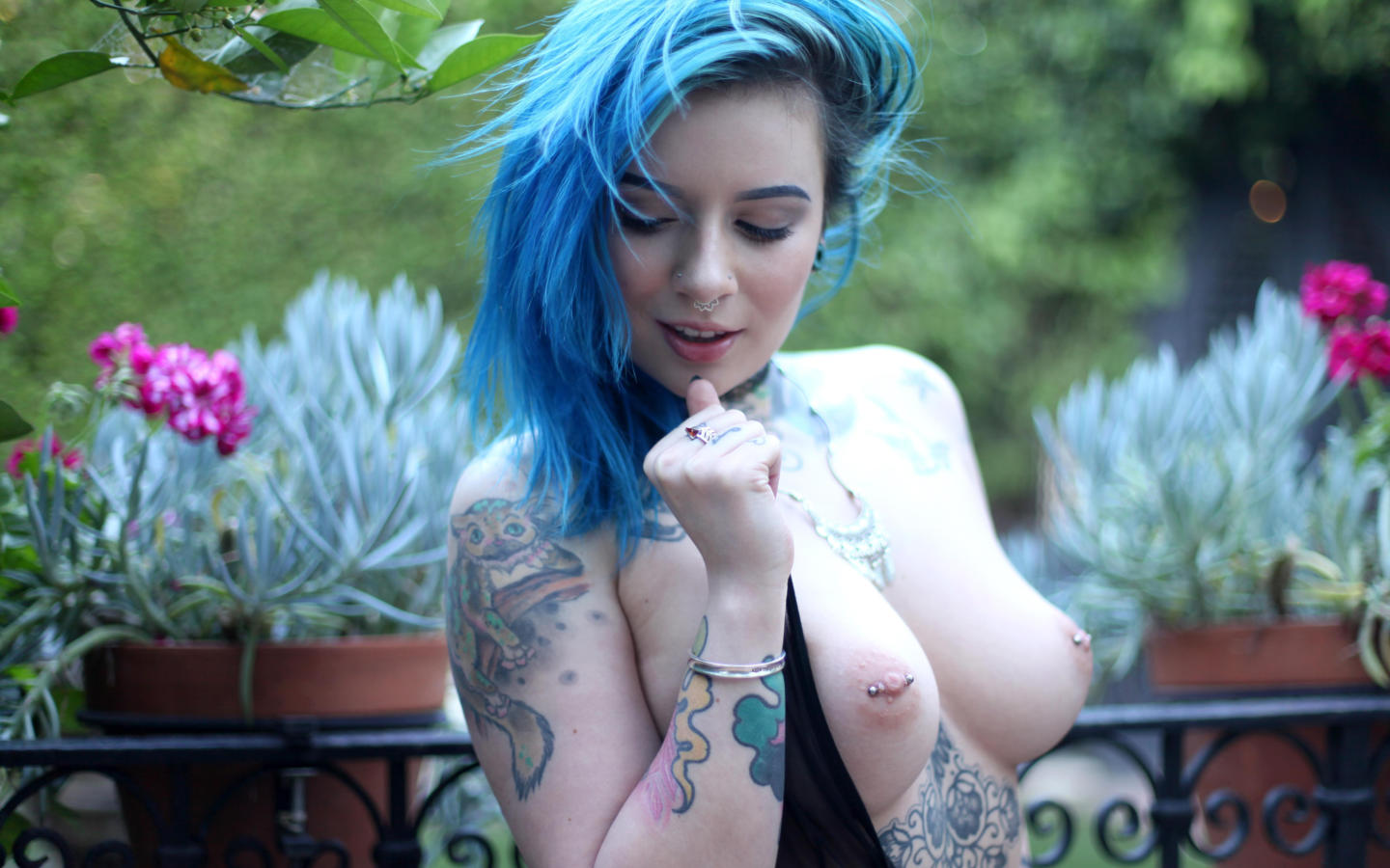 rebecca crow, katherine, suicide girls, tattoo, big  tits, blue hair, boobs, big tits, nipples, pierced nipples