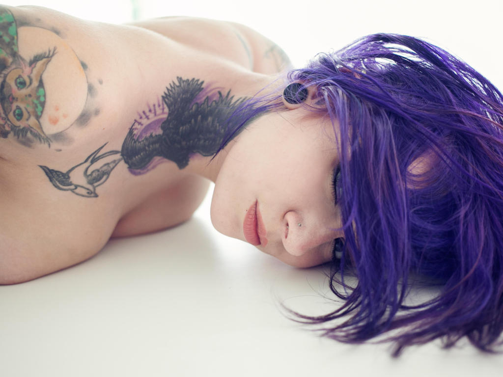 rebecca crow, katherine, suicide girls, tattoo, big  tits, purple hair, boobs, big tits