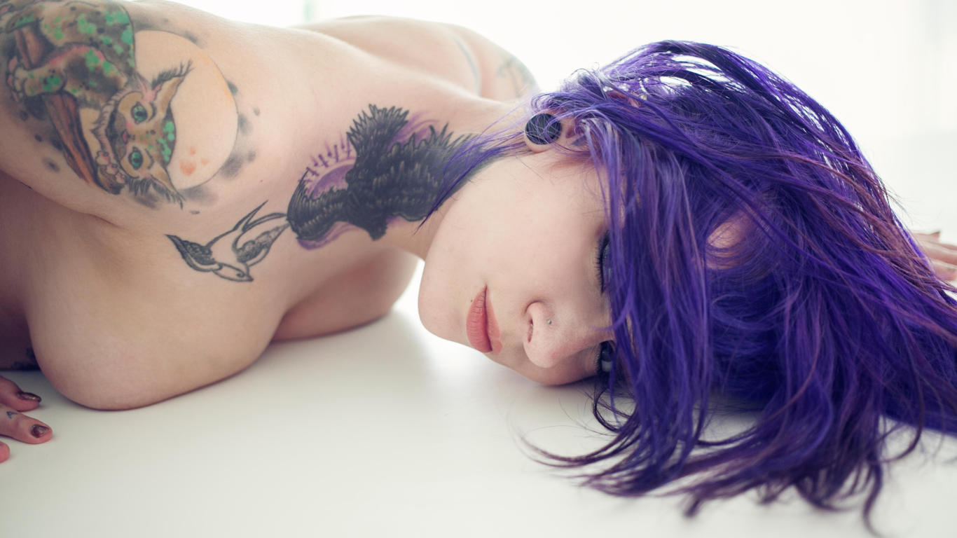 rebecca crow, katherine, suicide girls, tattoo, big  tits, purple hair, boobs, big tits
