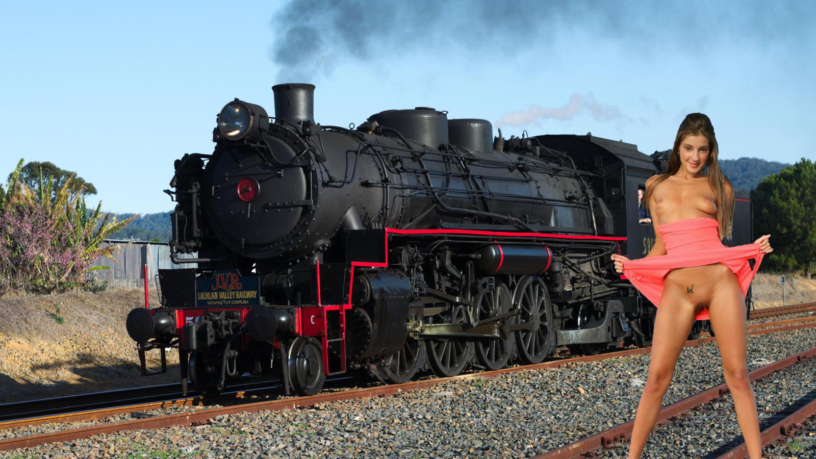 maria ryabushkina, maria, tara, melena, maria rya, brunette, dress, train, naked, tanned, boobs, tits, nipples, shaved pussy, labia, spread legs, flashing, tattoo, smile, hi-q
