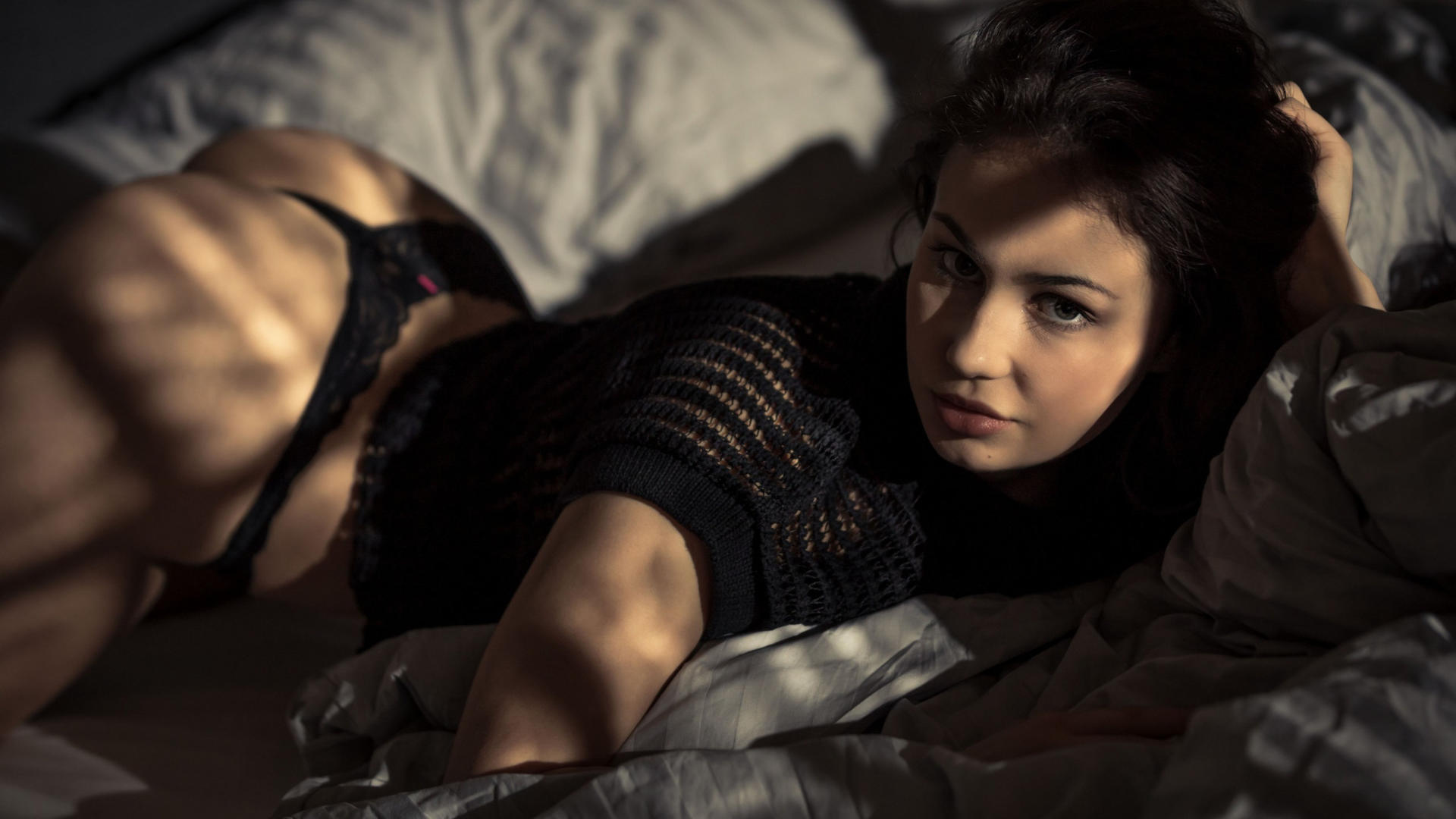 sophie limma, brunette, natural, czech, panties, bed, lying, black panties, ass