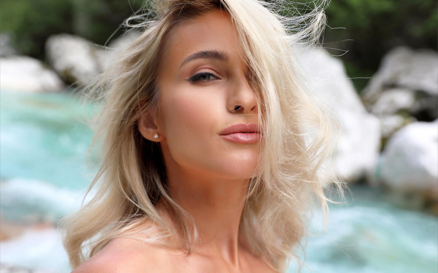 cara mell, blonde, natural, ukraine, ukrainian, outdoors, river, close up