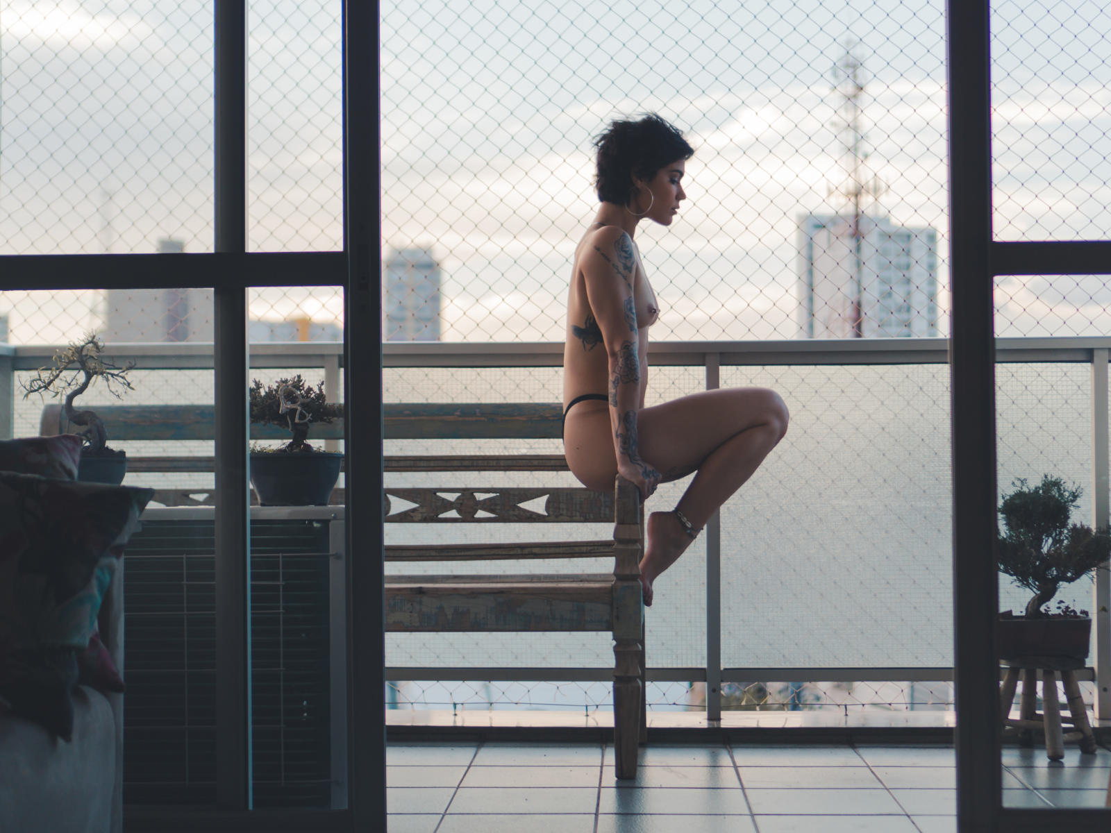 bruna, short hair, brunette, boobs, tattoo, topless, tits, pierced nipples, legs