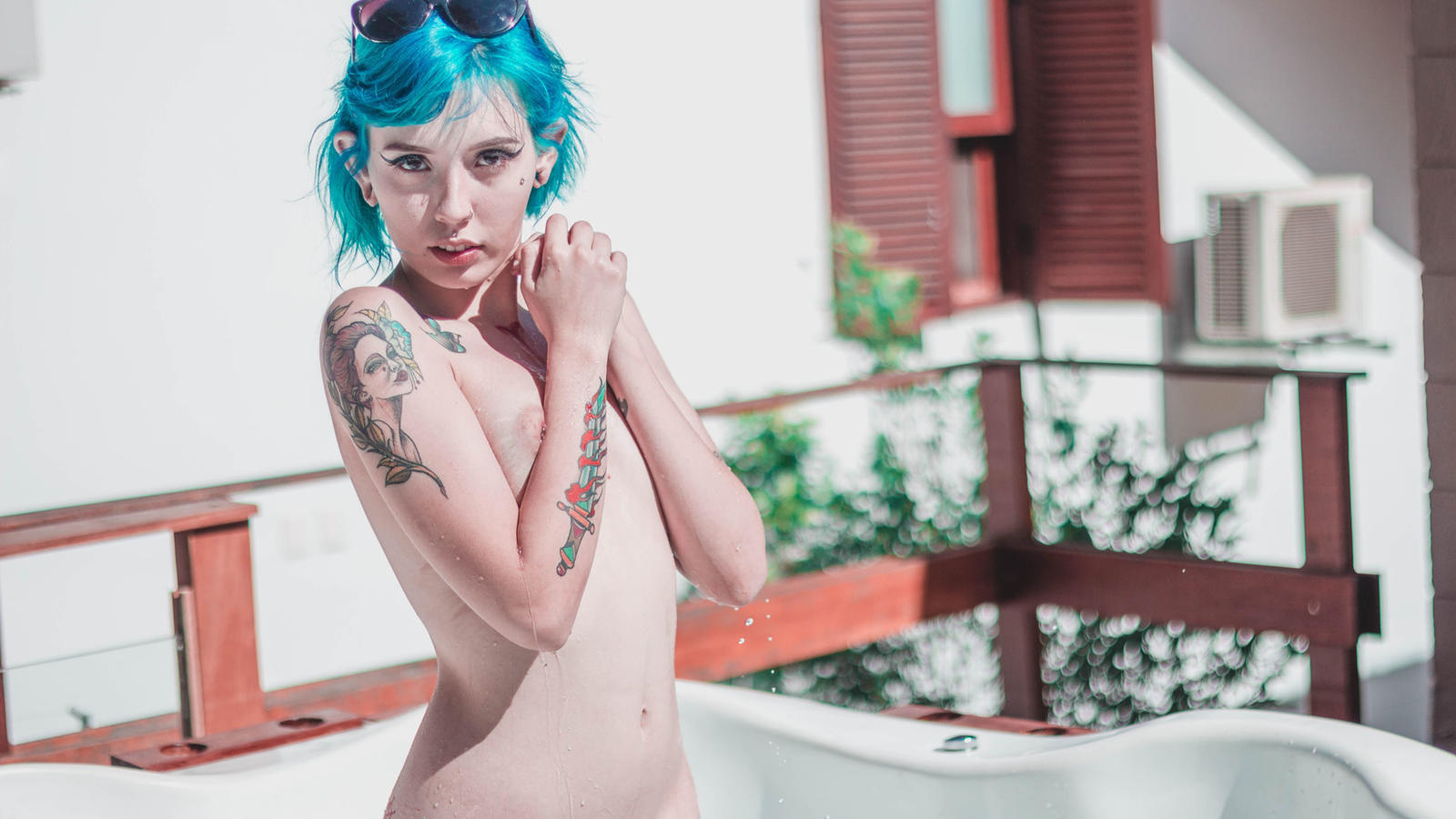 ana vohs, blue hair, tattoo, wet, nude, tits