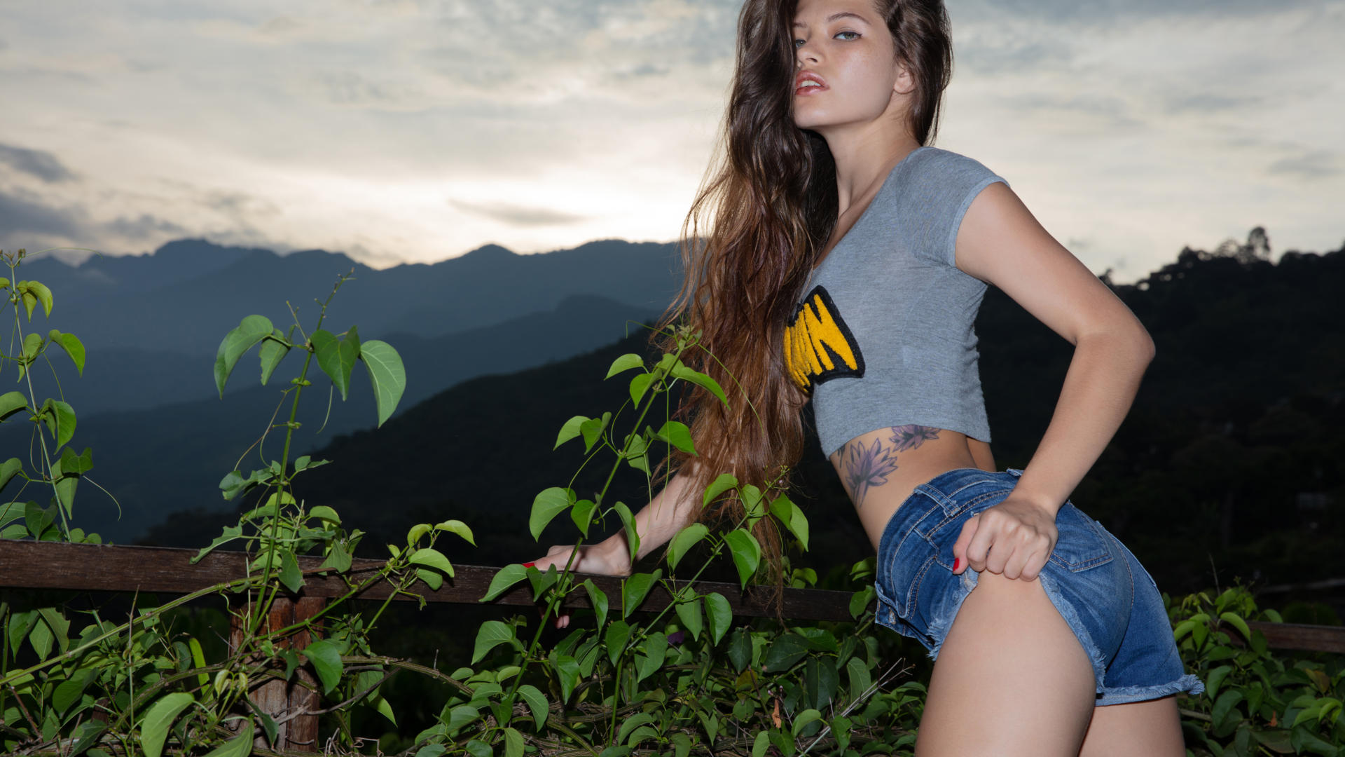 irene rouse, lejandra gomes, brunette, outdoors, non nude, cutoffs, teeshirt, ass, ultra hi-q
