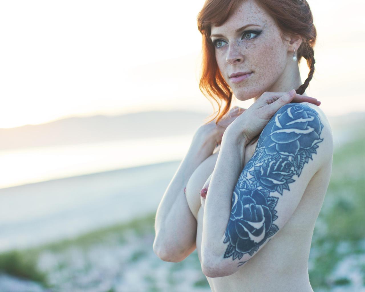 annalee, redhead, freckles, tattoo, tits, beach, sea, suicide girls, suicidegirls