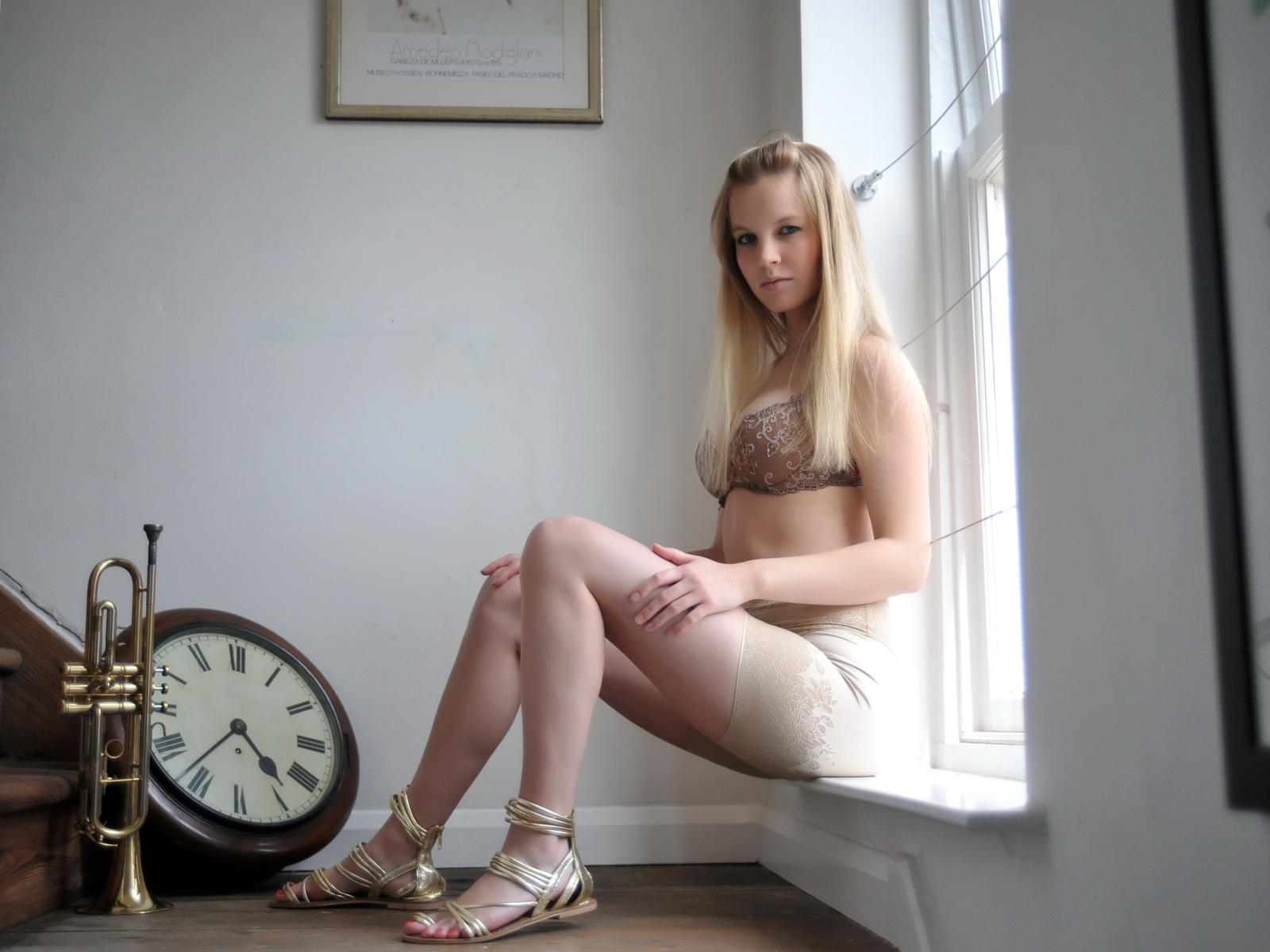 girls, lingerie, tits, models, blonde, malisa moir, clock, trumpet, rose delight
