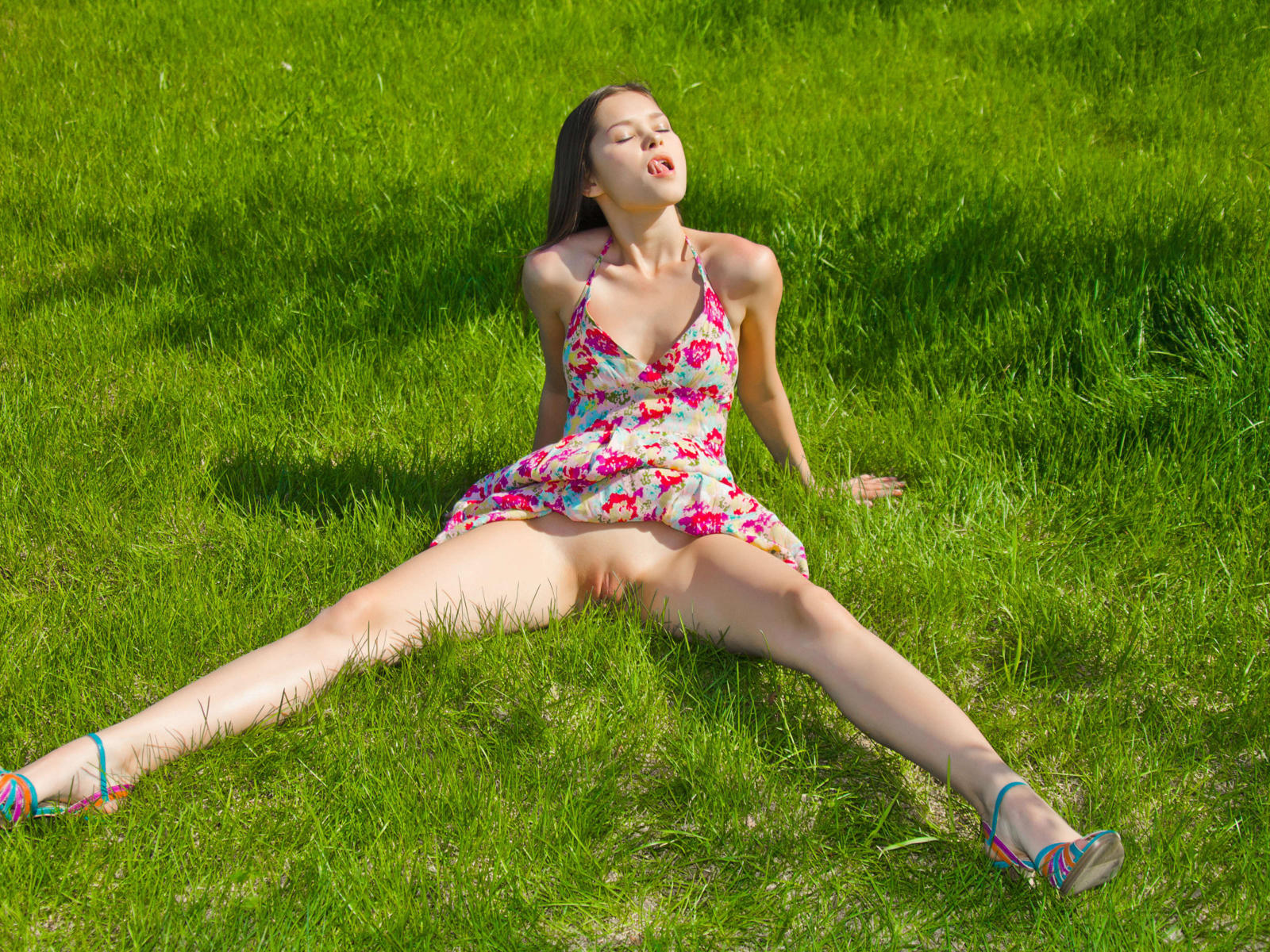 nastya k, dress, pussy, sexy, wquxga, grass, spreading, legs, heels, skinny, delicious, small tits, tiny tits, brunette, outdoors