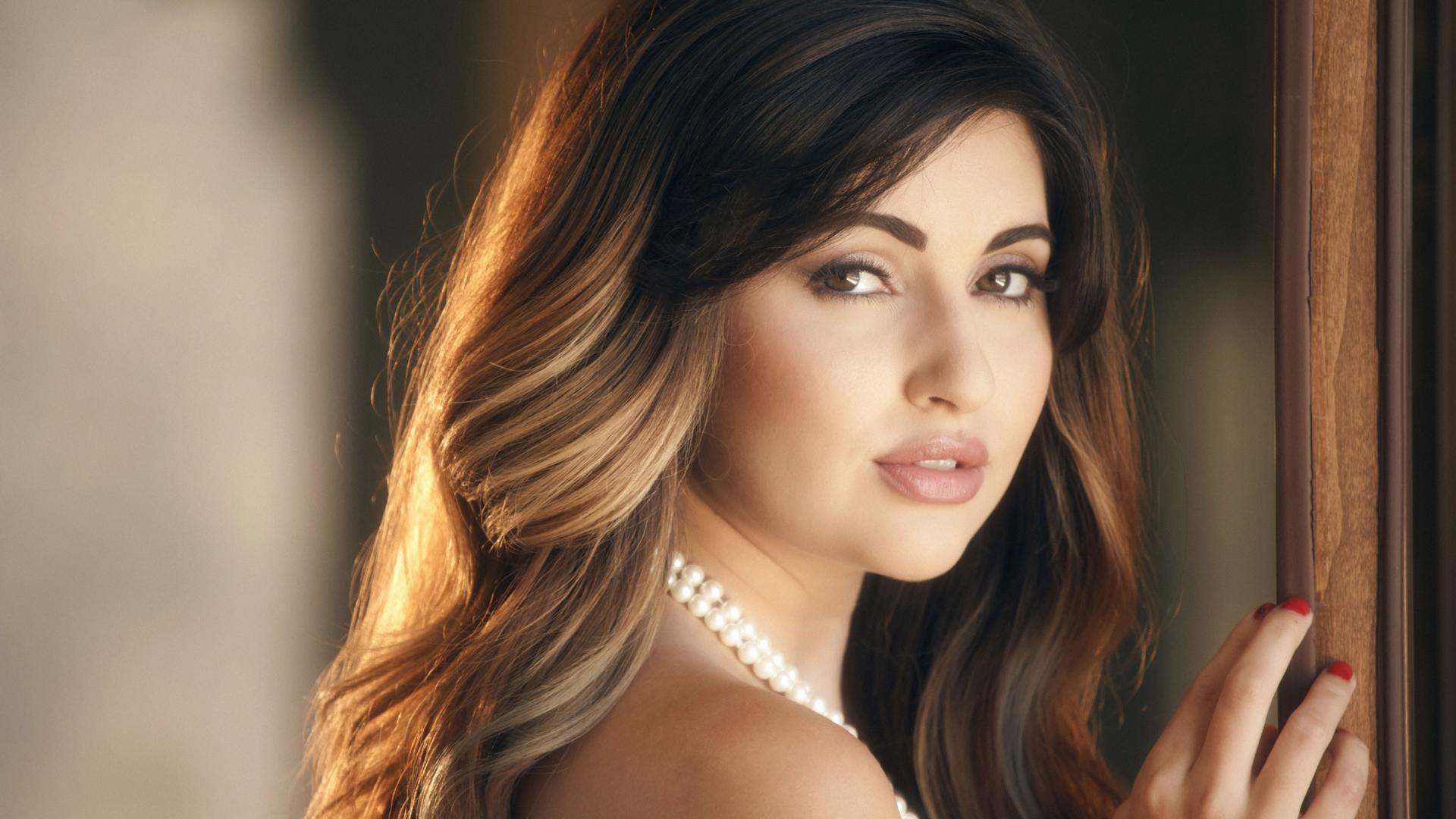 natasha malkova, brunette, sexy girl, long hair, view, look, beads, necklace, eyes, bisexual